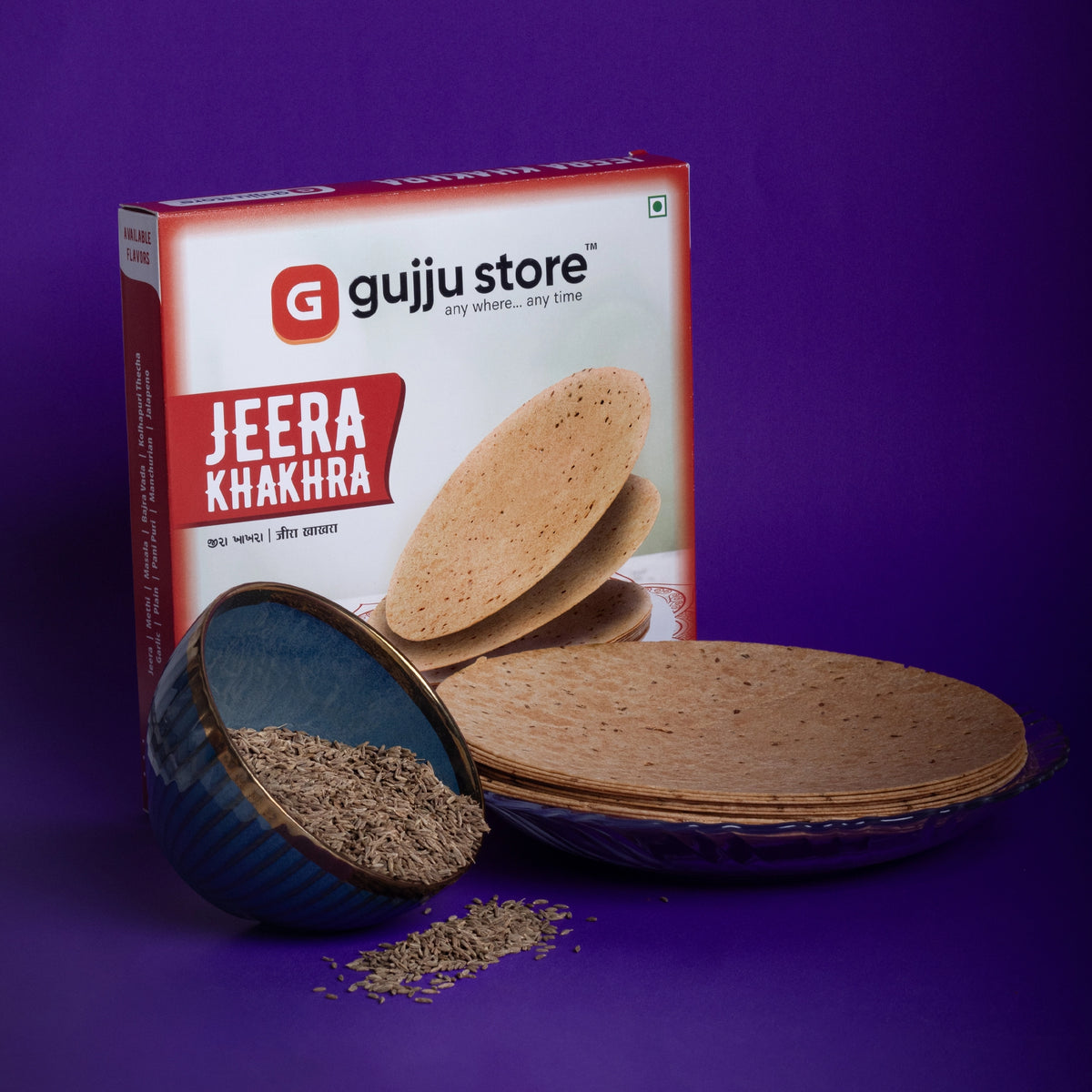 The Gujju Store Jeera Khakhra is another crispy, crunchy and light snack partner for your small hunger. Made up of whole wheat flour with the goodness of cumin seeds, these jeera khakhras are light on your gut and great for your cravings. These paper-thin crispy and crunchy khakhra are hygienically made and vacuum-packed to retain freshness. Just get yourself a few packets of our super thin Jeera khakhra and savour its taste guilt-free at any time of the day.