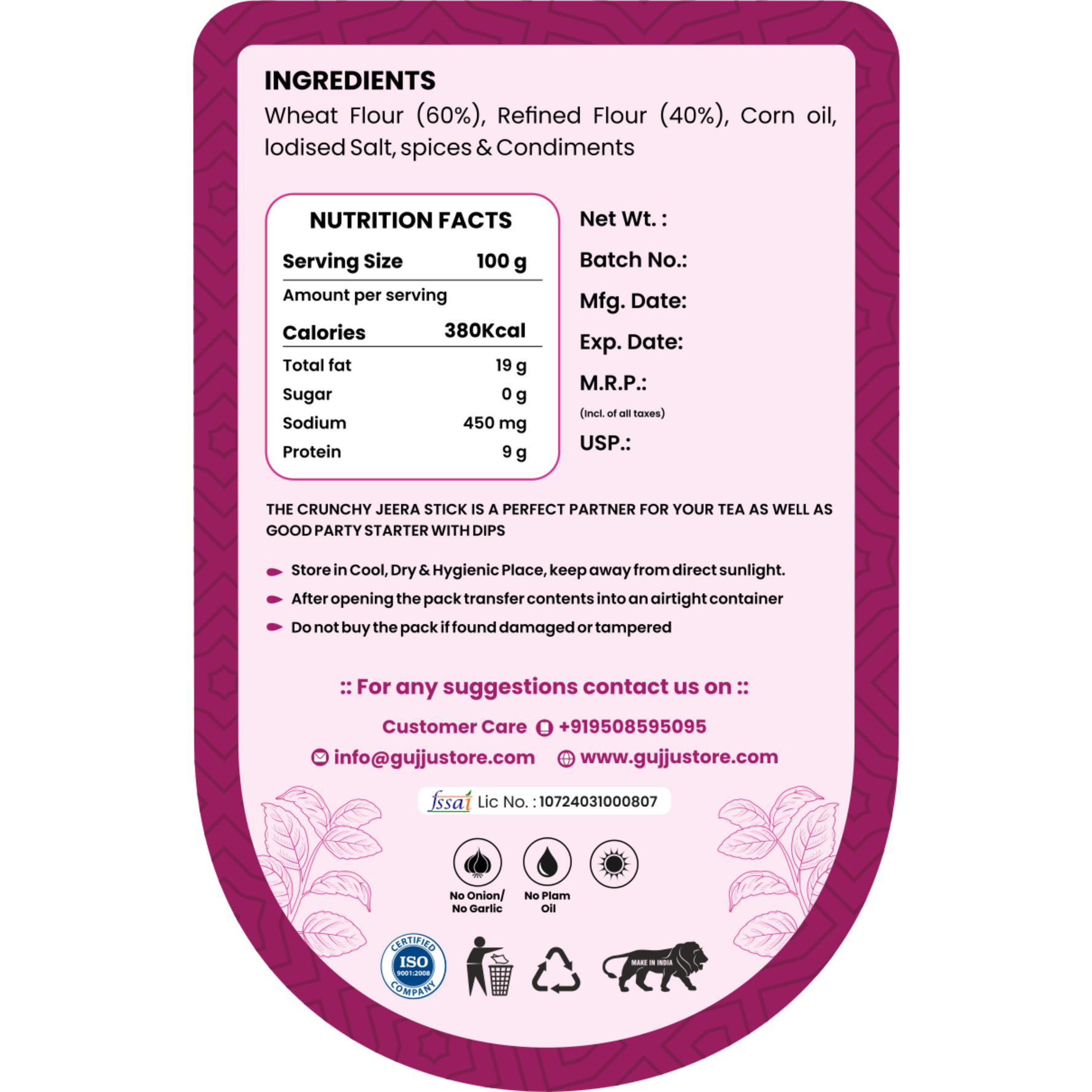 Our Roasted Jeera Stick is made with natural ingredients, baked to golden perfection, and seasoned with aromatic cumin (jeera) for that traditional taste you can’t resist 😋