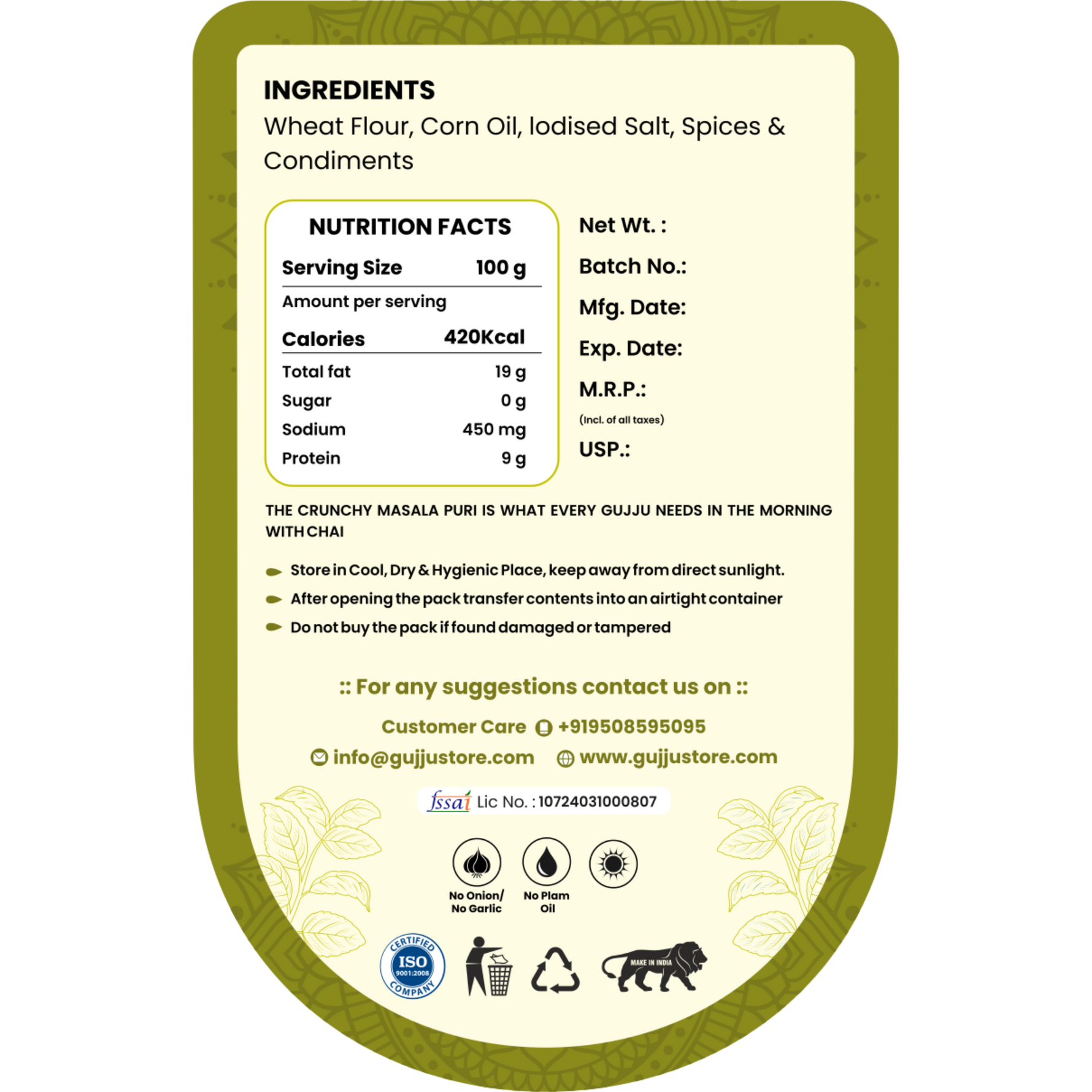 Our Roasted Masala Puri is a crunchy, flavorful snack made with 100% natural ingredients and baked to perfection — not fried. Each puri is coated with traditional Indian masala that delivers a perfect balance of spice and crunch in every bite 😋