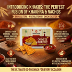 Discover Khakos, the revolutionary snack creation brought to you by Gujju Store. Derived from the combination of words Khakhra and Nachos, Khakos offers a unique snacking experience like no other. Crafted with whole wheat flavor and infused with our signature oriental seasoning, Khakos is the ultimate go-to snack for every occasion. A sweet spicy umami flavored!