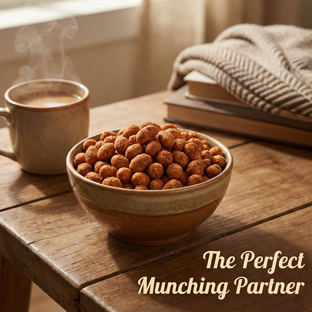 Unlike traditional fried snacks, our peanuts are roasted, not fried, ensuring a light, crispy texture without excess oil. The perfect balance of spice and smokiness makes each bite irresistibly tasty.